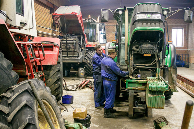 Познакомились мы и с механизаторами хозяйства. В просторной, теплой и чистой мастерской ждут страды трактора и грузовики для обработки полей и обслуживания животноводческого комплекса. Главный инженер Валерий Баринов работает в хозяйстве с 1976 года. Более чем за 40 лет в развитии аграрного сектора повидал многое. Но такой разнообразной и производительной техники, которой хозяйство располагает сейчас, он не припомнит и в советские времена.