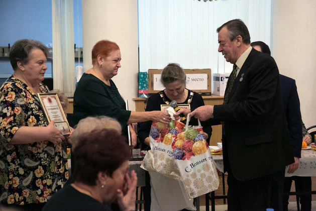 Председатель Владимирского отделения Союза пенсионеров России Сергей Полуэктов передал всем присутствующим поздравления от Губернатора Владимира Сипягина, советником которого он является. Троим ветеранам, отметившим в декабре 2018 года юбилейные даты, он передал от главы региона поздравления, цветы и подарки.