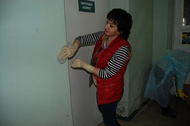- По поводу сегодняшнего хочу сказать так, - начала судя по всему пассионарно настроенная активистка. - Конечно, хорошо, что они убираются, но, скажите пожалуйста, какой будет с этого прок? Крыша течет! И унижать наших врачей, что они ходили по грязному полу в белых халатах, не надо! У нас никогда не был грязным пол. И всегда шторы были стиранные. Но, извините, сыплется с потолка. Перед Новым годом постирали шторы, повесили, но дождик пошел и все потекло. Как вы думаете, что стало с этим тюлем? Я хотела бы узнать у тех, кто мусолит эту ситуацию, кто бы пришел сюда работать за 2,5 тыс. рублей, как наши уборщицы?