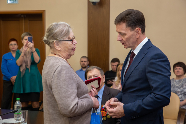 Во время награждения пережившая блокаду Лола Васильевна Анисимова подарила губернатору свою картину, а участник хора ветеранов из Гусь-Хрустального Евгений Степанович Гультяев вручил книгу со своими воспоминаниями и попросил финансовой поддержки для своего коллектива.