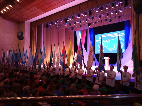 Открытие началось с государственного Гимна России и торжественного выхода на сцену с флагами сначала представителей 13 регионов-участников чемпионата, а затем знаменосцев из образовательных учреждений Владимирской области. 32 колледжа и два вуза - именно таким будет наше представительство в профессиональных состязаниях. В отдельном возрастной категории будут соревноваться юниоры.