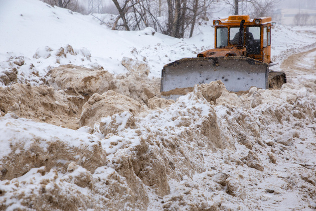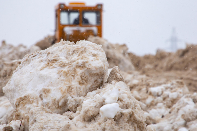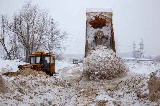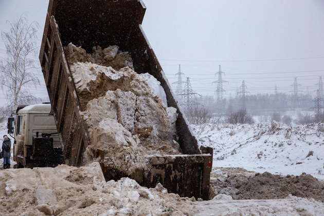 Владимирская мэрия сегодня, 13 февраля, устроила экскурсию для журналистов в Михайловский овраг, продемонстрировав, как ударно город избавляется от снега: самосвалы привозят бело-грязную массу в режиме нон-стоп, а гусеничные трактора ее дружно трамбуют... Справедливости ради заметим, что самосвалы во время нашего присутствия на снежном полигоне заезжали и разгружались буквально каждую минуту. По словам Николая Дятлова, заместителя директора МКУ «Центр управления городскими дорогами», каждый день 20-25 собственных и арендованных самосвалов ЦУГДа совершают порядка 300 рейсов со снегом в Михайловский овраг, скидывая в него около 5 тысяч тонн. Плюс сюда бесплатно принимают снег с машин, арендованных управляющими компаниями и ТСЖ. Эксперт уверяет, что обваловка, которую проводят на полигоне, якобы позволяет «предотвратить воздействие талых вод на окружающую среду», когда все эти снежные барханы начинают таять. Проверял ли это кто-нибудь, большой вопрос. А надо понимать, что вместе со снегом снегоуборочные машины собирают и песковую смесь, и, что еще хуже, реагенты. Так что о плодородности этого участка земли вряд ли можно говорить. Причем, его размер нам тоже выяснить не удалось: Дятлов сказал буквально «я сам задавался вопросом о размере этой территории, но не нашел данных».