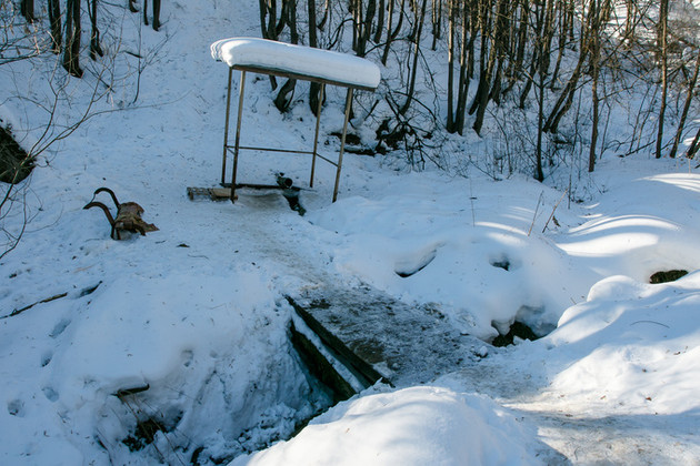 Проведя минут двадцать у родника на ул. Офицерской, мы так никого и не встретили. Похоже, не попали в «часы для посещений». Но лестница расчищена, по крутым склонам натоптано множество тропинок: видно, что люди ходят сюда постоянно.