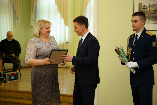 Губернатор вручил благодарственные письма, цветы и подарки многодетным мамам.