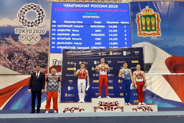 Илья Кибартас в личном первенстве стал вторым в упражнениях на кольцах.