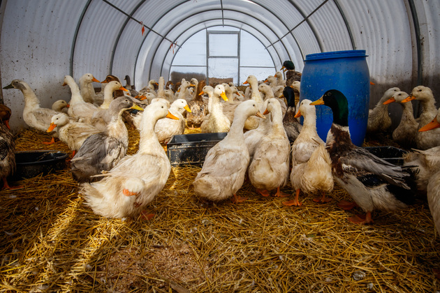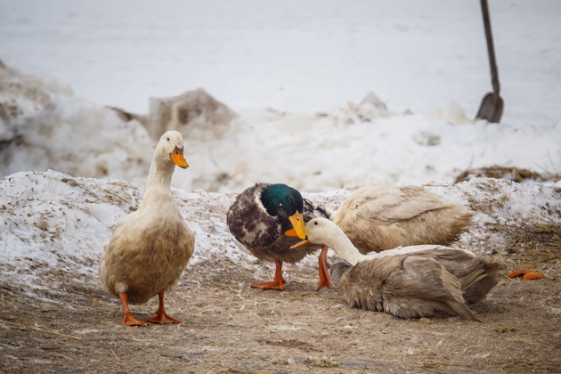 ...В доме тепло, но пора однако и на птичек посмотреть. Под согнутым дугой карбонатом суетятся утки, шумят, покрякивают. Масть разная, размер тоже. «Башкирская цветная», белоснежная «Агидель» и юркий «Фаворит», есть еще «Индийский бегун» - этот совсем мелкий, но, говорят, дюже яйценоская порода. Это родительская стая. Выжили без антибиотиков и способны дать потомство с сильной иммунной системой.