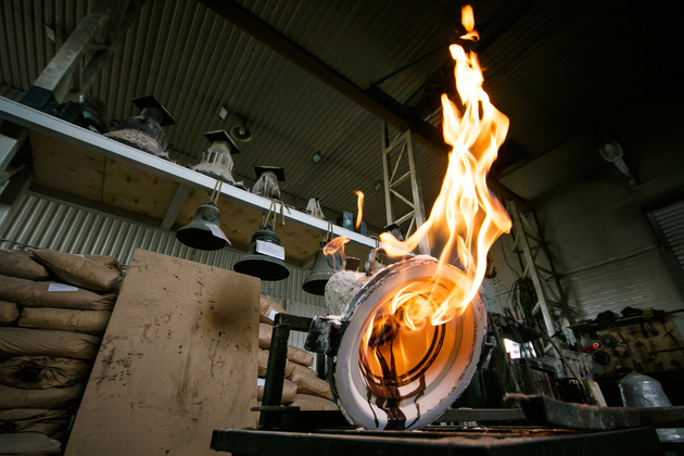 В древности колокола отливали поштучно. Прямо на месте. Процесс изготовления «голоса церкви» Тарковский показал в новелле «Колокол» фильма «Андрей Рублев». Колокольных дел мастера с окраины Вольгинского действуют по иному.