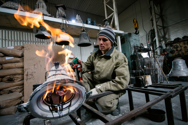 Сергей Коткин, ученик Егорыча, сменил профессию строителя на литейщика колоколов.