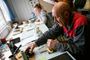 Из «ветеранов» в мастерской - Егорыч, Игорь Лукьянов – отец Игоря, и художник Александр Дружинин. Дружинин как раз при нас вырезал на воске эмблему Президентского полка для обнарядки подарочного колокола - колокола «наряжают» надписями, эмблемами, изображением святых, орнаментами.