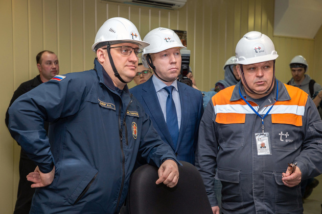 Директор Владимирского филиала «Т Плюс» Дмитрий Федоров и технический директор Владимирской ТЭЦ-2 Сергей Прозоров показали Байеру предприятие.