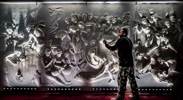 Всемирно известные картины воплощены в барельефах на стенах нового музея скульптуры. Объем работ впечатляет: 7 залов, 5 их которых посвящены Босху, 22 тонны штукатурки и более 700 квадратных метров «оживших» стен. Новое арт-пространство было создано за 60 дней усилиями 40 художников со всего мира. В их числе был и владимирский скульптор Илья Шанин.