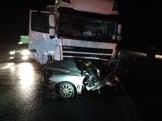 В 2 часа ночи 16 апреля у поворота на аэропорт легковой автомобиль врезался в фуру и превратился в груду металла.