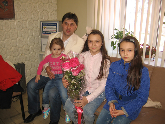 Особенно, конечно, радовался рождению сына папа Анатолий. Он приехал вместе с дочками в белом костюме и белой рубашке, с большим букетом роз. Рассказал, что непросто было ему в эти дни. Особенно в день выписки из роддома жены и сына: волновался, пришлось собирать и наряжать дочек (он сам умеет делать прически девочкам!) и не забыть ничего из приданного для новорожденного.