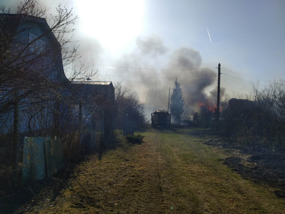 В настоящий момент дознаватели устанавливают причины возгорания, но уже известно, что горела также и сухая трава возле построек.