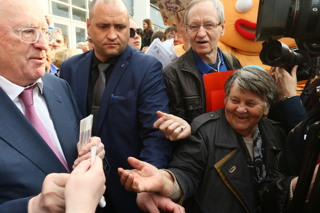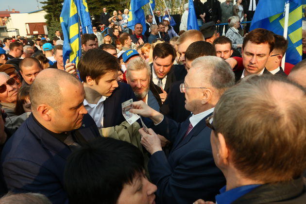 Но его выступление слушали не очень внимательно. Владимир Жириновский уже раздавал деньги, которые бы позволили владимирцам достойно встретить Пасху. Граждане пробирались из толпы, окружившей Жириновского, со смятыми купюрами и счастливыми лицами. Сколько же всего денег Жириновский пожертвовал нашим землякам? Уже в Камешкове Жириновский сказал, что раздал владимирцам около 150 тысяч рублей. Может, счёт идёт на миллионы?