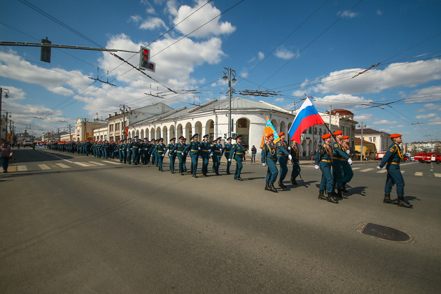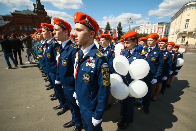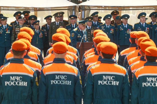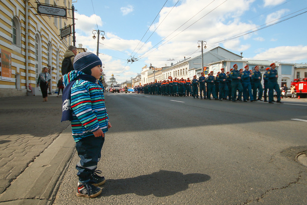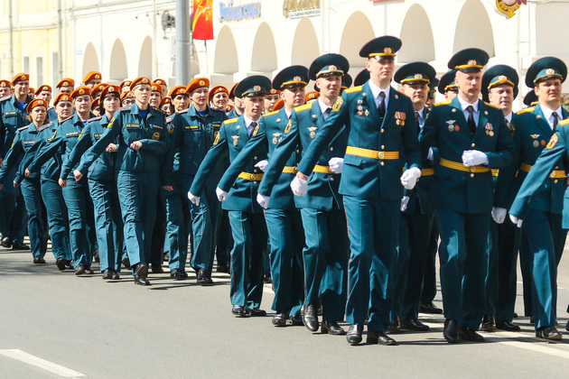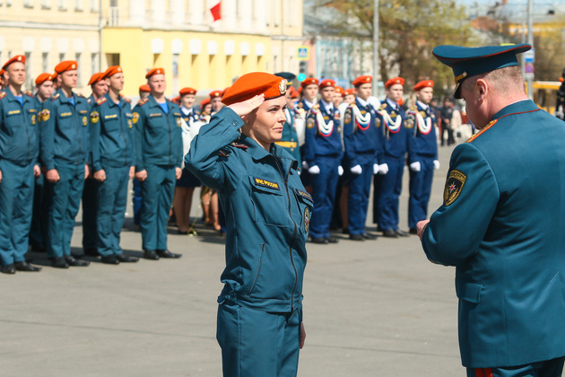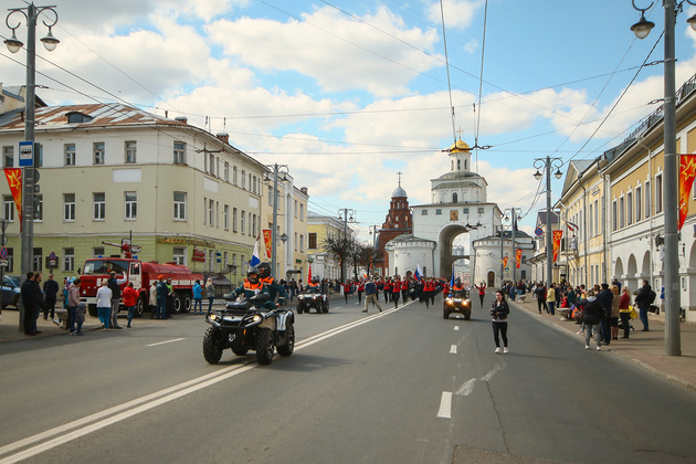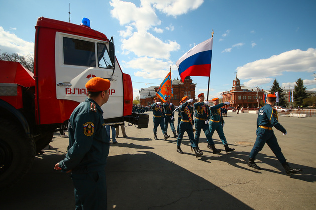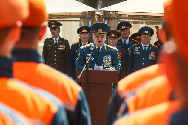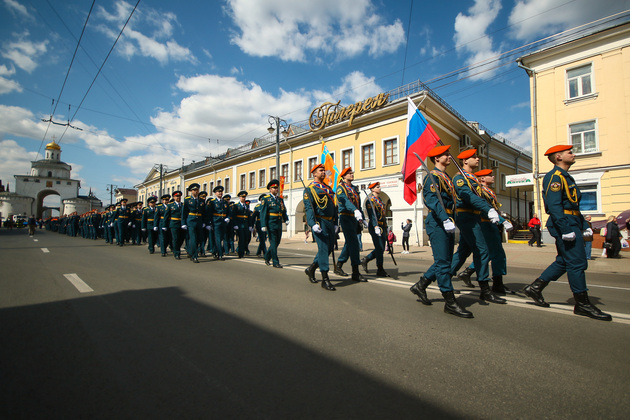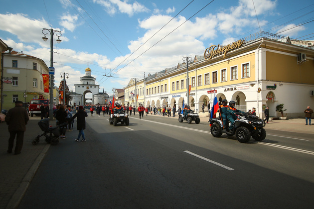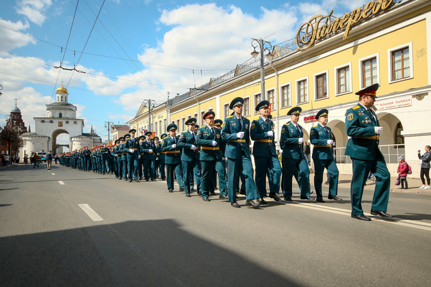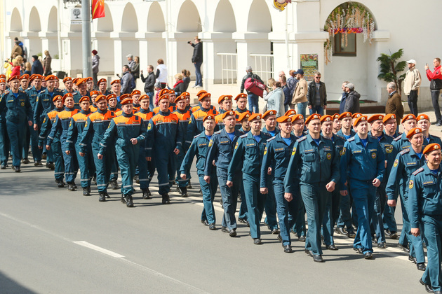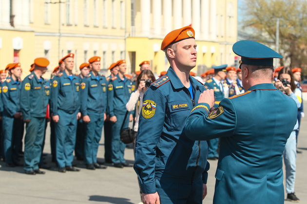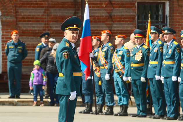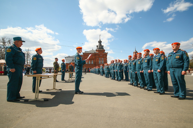 На Соборной площади к участникам парада обратился начальник Главного управления МЧС России по Владимирской области генерал-майор внутренней службы Владимир Александрович Белозёров:
