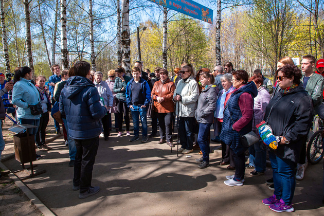Экскурсоводом стал Иван Ростовцев, автор петиции в защиту парка, которую подписали более трех тысяч человек. В 14 часов он уже стоял у главного входа, окруженный жителями города, и отвечал на их вопросы.