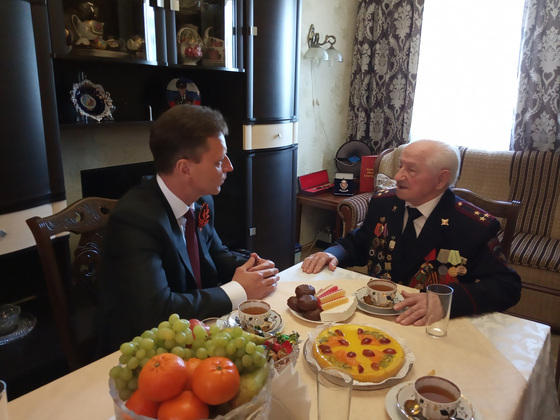 Губернатор области приехал к нему домой с букетом роз и подарками. Встреча была очень теплой и сопровождалась дружескими рукопожатиями.