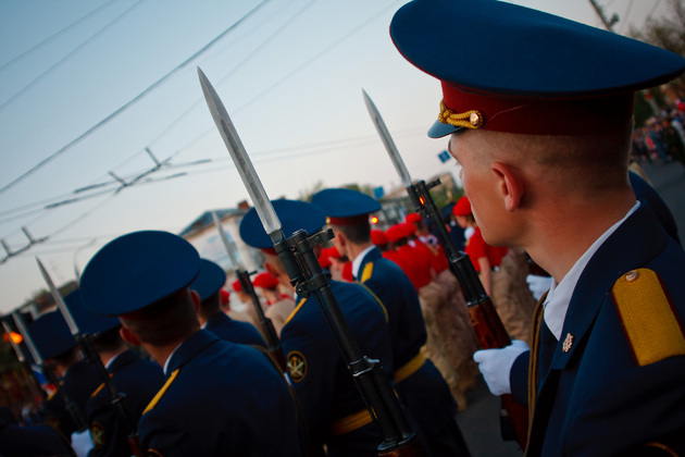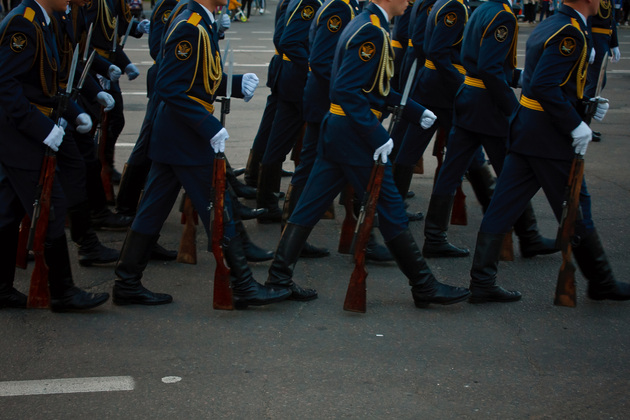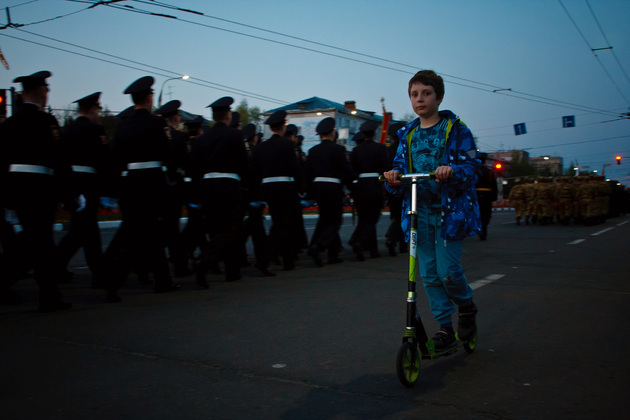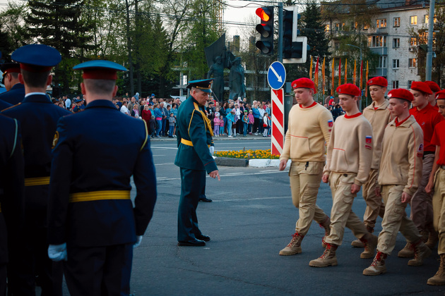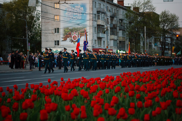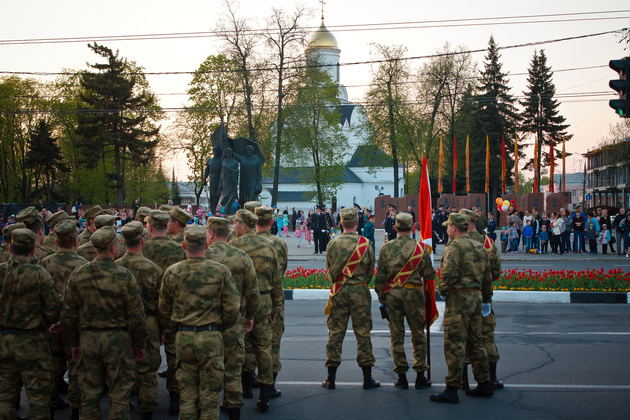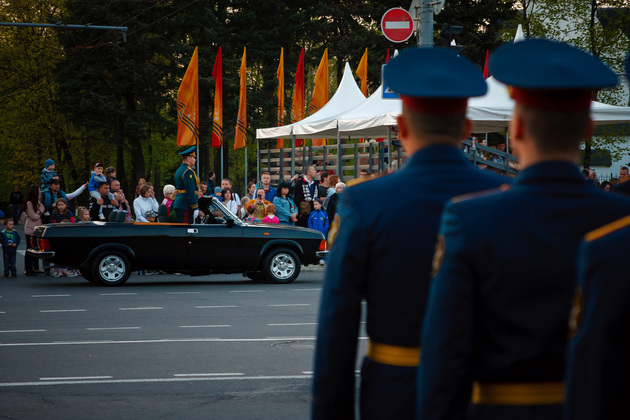 7 мая во Владимире репетировали Парад Победы, который пройдет на площади Победы 9 мая. Фоторепортаж Владимира Чучадеева.