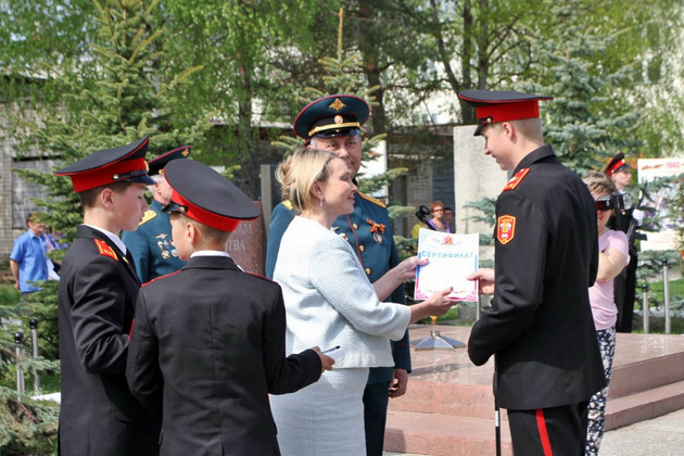 От имени губернатора Владимира Сипягина Марина Чекунова поздравила кадетов и их преподавателей с Днём Победы.
