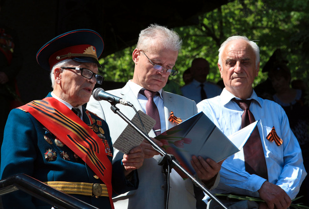 Слово взял глава администрации Фрунзенского района Николай Маркин. – Празднование Дня Победы всегда будет для нашей страны всенародным праздником, – провозгласил он и объявил митинг открытым.