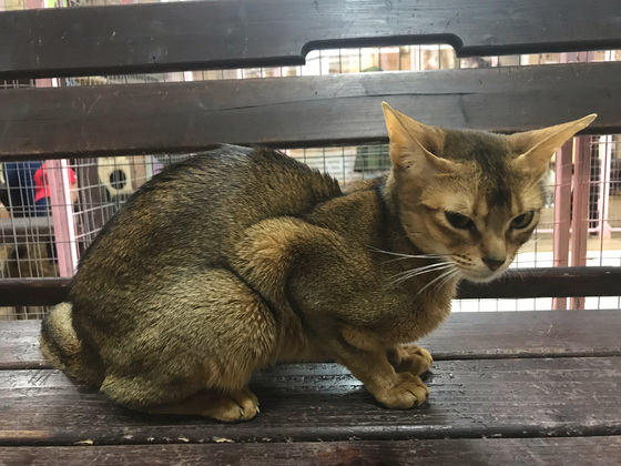 Но есть в вольерах и другие кошки – активные. Нет, они не играют с детьми, их активность выражается немного иначе. Животные караулят у дверей вольера, дожидаясь, пока кто-нибудь из посетителей захочет выйти. Дверь клетки открывается и кошки выбегают. Сотрудники «Федерации…» реагируют моментально – если кошку вовремя не поймать, то она может не только из вольера выбраться, но и убежать за территорию выставки.
