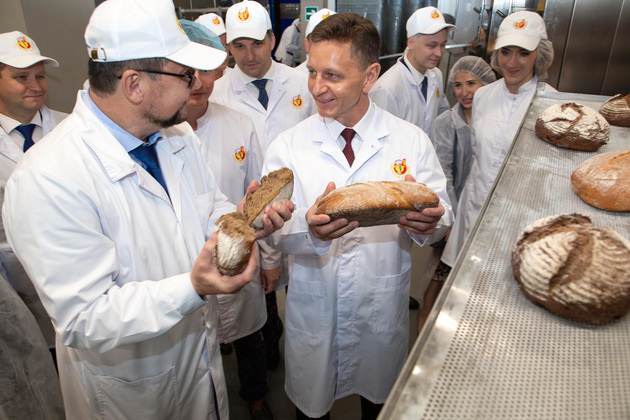 Алексей Лялин лично провел для главы региона экскурсию по комбинату, показав буквально всё — от линий по производству батонов и баранок до цехов национальных хлебов и глубокой заморозки. Познакомил Владимира Сипягина и врио первого вице-губернатора Максима Брусенцова с молодыми дарованиями, сделавшими карьеру на предприятии. Например, руководителю участка выпуска рустикальных хлебов Михаилу Тимофееву нет еще и 30 лет. А он уже «вырос» до начальника - именно здесь, на предприятии, пройдя обучение в Германии.