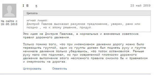 Депутат также ссылается на опрос, проведенный им в социальной сети "Инстаграм". По данным Павлова, 77 % его участников поддержали его идею отобрать приоритет на зебрах у одиночных пешеходов. К сожалению, результатов этого опроса мы на странице депутата не нашли, поэтому опубликовать здесь не можем.