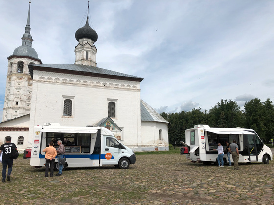 1 июня в рамках проекта «Гастрономическая карта России» в городе-музее состоялся уличный фестиваль еды. По Суздалю колесили и парковались в популярных местах – на Торговой площади, возле Спасо-Евфимиева монастыря, на Ильинском лугу, у музея Деревянного зодчества - специальные автомобили-фудтраки.