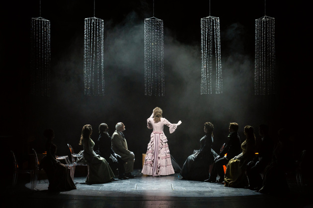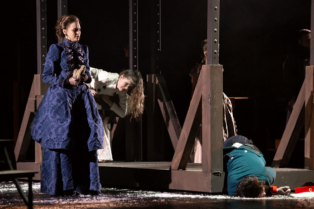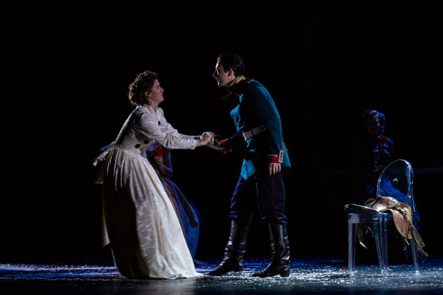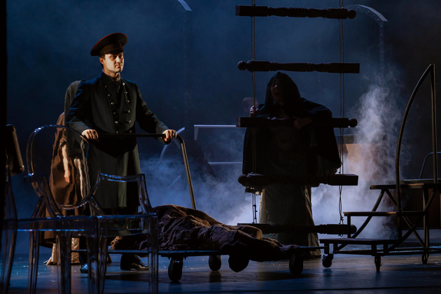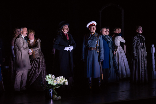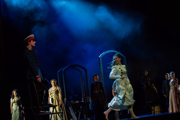 Владимирскую «Анну Каренину» поставил Владимир Кузнецов, на счету которого около десятка спектаклей текущего репертуара театра, включая «Собачье сердце», «Золотой теленок» и нашумевшую «Молодую гвардию». Разумеется, он прекрасно понимал, насколько непростой будет конкретно эта работа. Потому что сравнений не избежать. И потому что роман в тысячу страниц с целым букетом характерных сюжетных арок априори сложно «втиснуть» даже в нескромные три часа сценического времени, избежав при этом разрывов в истории.
