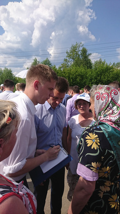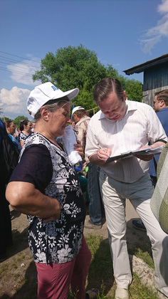 В некоторых населенных пунктах приезд лидера ЛДПР воспринимался как памятное событие. Как словам жителей, до местной власти достучаться сложно, на многие их просьбы ответ звучит один - нет денег. Поэтому в Добрятино жители охотно фотографировались с лидером фракции, а увидев рядом с ним Владимира Сипягина активно пользовались возможностью откровенно рассказать первому лицу о своих бедах.