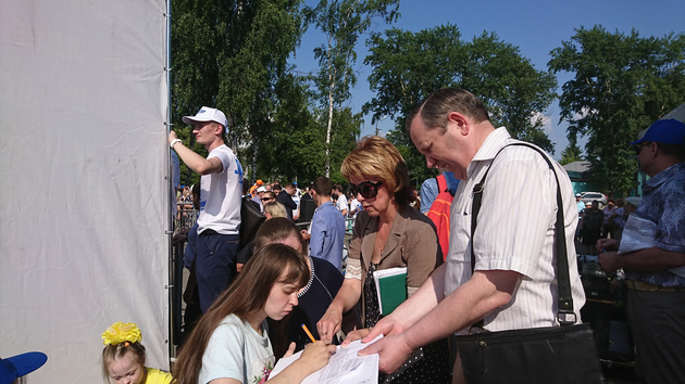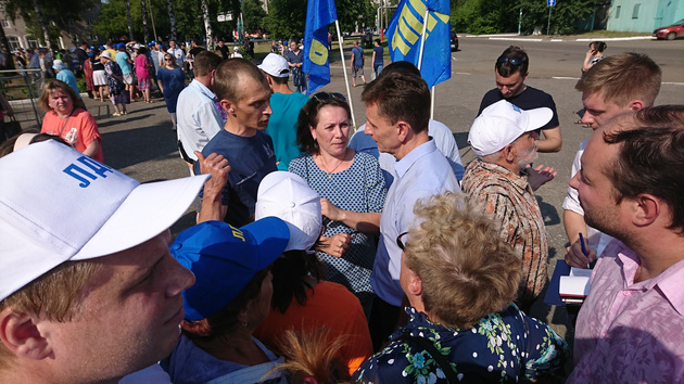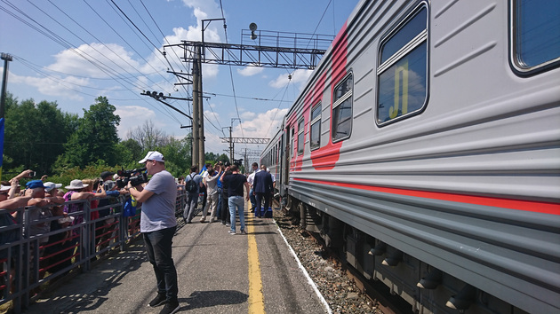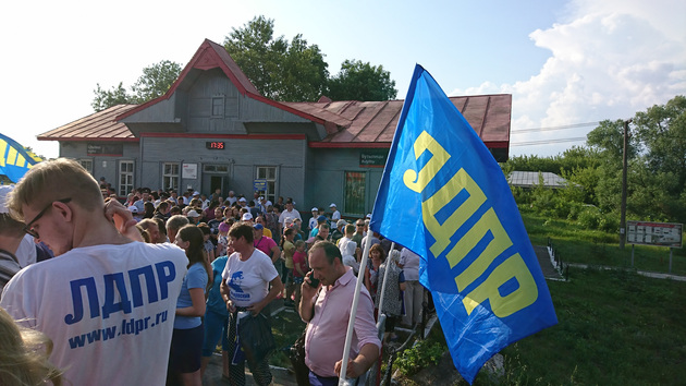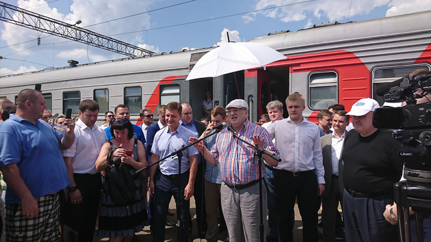 К моменту прибытия агитпоезда ЛДПР у платформы собралось человек 120. Среди них был губернатор Владимир Сипягин и руководители структур областной администрации, отвечающие за работу с обращениями граждан.