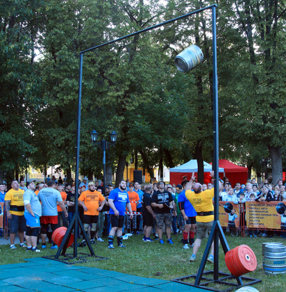 Самым рискованным для силачей и зрителей было метание кегов через перекладину. Но обошлось. Никто не пострадал. Хотя при перекидывании 20-килограммовых бочонков через перекладину выше 5 метров они всё норовили отскочить от неё и упасть на богатырей. Но они просто отмахивались от них, как от назойливых мух.