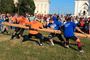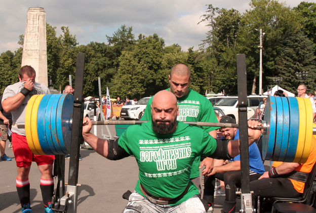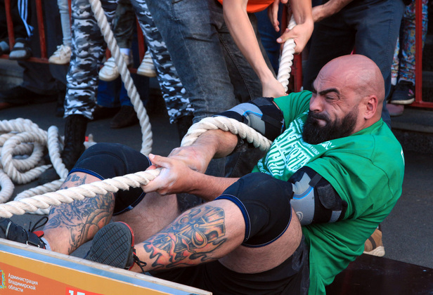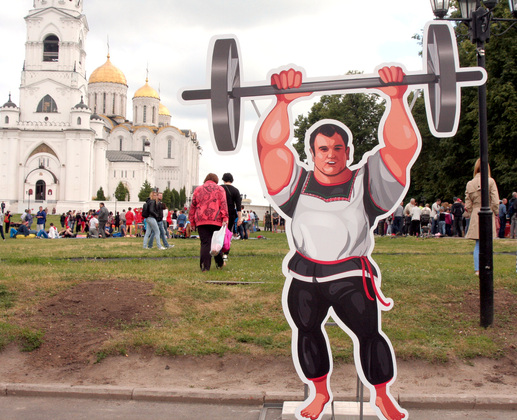 Потом они на пару стали отрывать от земли штангу, провисавшую под тяжестью немыслимого груза. Это упражнение носило название становая тяга. Гриф прогибался, когда богатыри тянули его вверх. Казалось, он вот-вот треснет. Но, как пояснил «Владимирским ведомостям» Алексей Сипач, эта железная палка была сверхпрочной, даже прочней той, какую можно увидеть на Олимпийских играх. Её изготовили по спецзаказу на каком-то секретном заводе. К всеобщему удовольствию в парной становой тяге первое и второе место разделили команды из Владимирской и Курской областей: они оторвали от земли штангу весом 680 кг. Силачи решили пойти на рекорд – 700 кг, но штанга им на сей раз не поддалась. Богатыри сказали, что им есть ещё над чем работать. А может, всё дело в грифе, над которым тоже надо ещё работать.
