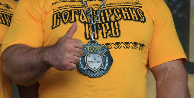 Грянул гимн России. Алексей Сипач объявил третий фестиваль народных традиций, отечественных видов спорта и боевых искусств открытым. И атлеты, играя мускулами, подошли к своим снарядам.