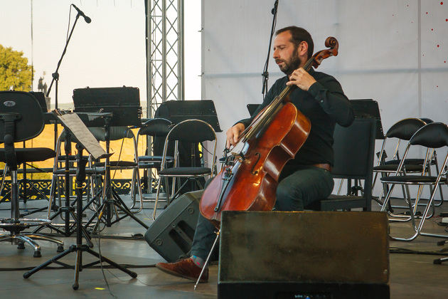 Финальный концерт VI сезона «Музыкальной экспедиции» проходил под открытым небом - на смотровой площадке на улице Георгиевской во Владимире. В первой части концерта квартет в составе руководителя проекта Бориса Андрианова (виолончель), Леонида (клавишные) и Николая (саксофон) Винцкевичей, Вартана Бабаяна (барабаны) представил слушателям джазовые импровизации на темы виолончельных сюит Иоганна Себастьяна Баха. Затем на сцену вышли девушки из ВИА «Татьяна», исполняющие песни 30-60-х годов прошлого века. Они выступали в сопровождении Владимирского губернаторского симфонического оркестра под управлением Артема Маркина.