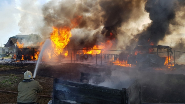 Общая площадь пожара составила 250 кв. м. Пострадавших нет. К ликвидации последствий пожара привлекалось 8 единиц техники, 25 человек.