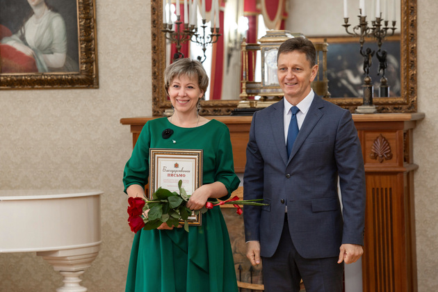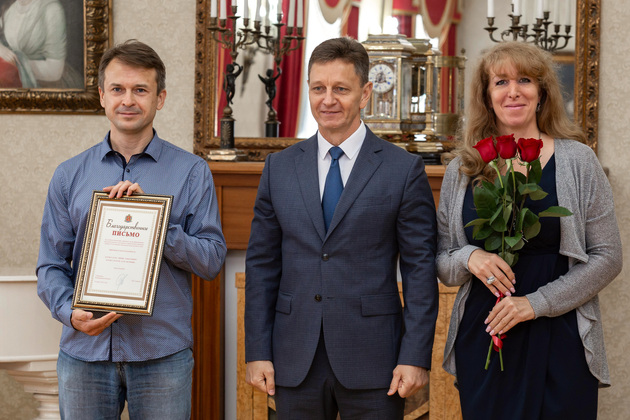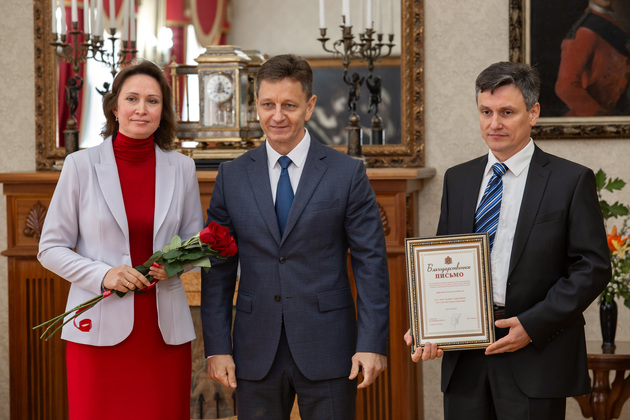 Губернатор вручал цветы и благодарственные письма ребятам и их родителям, поздравлял, дарил напутствия.