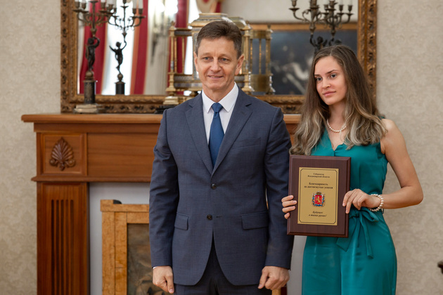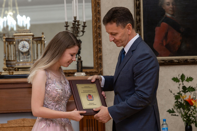 Губернатор Владимир Сипягин впервые пригласил на торжество выпускников школ области, отличников учебы, награжденных медалью «За особые успехи в учении».