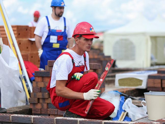 Впервые на Всероссийском конкурсе практическую часть участники выполняли на площадке строительства индивидуального жилого дома. На каждом доме работали четыре участника: им нужно было выполнить слоистую кладку несущей стены из керамического блока, утеплителя и облицовочного кирпича. Чтобы ускорить практическую часть, каменщикам помогали студенты - замешивали и подносили раствор.