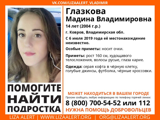 Поисковый отряд «Лиза Алерт» разыскивает Мадину Глазкову, 14-летнюю жительницу райцентра. Она ушла из дома 6 июля. И вот уже почти 2 недели ее местонахождение неизвестно.