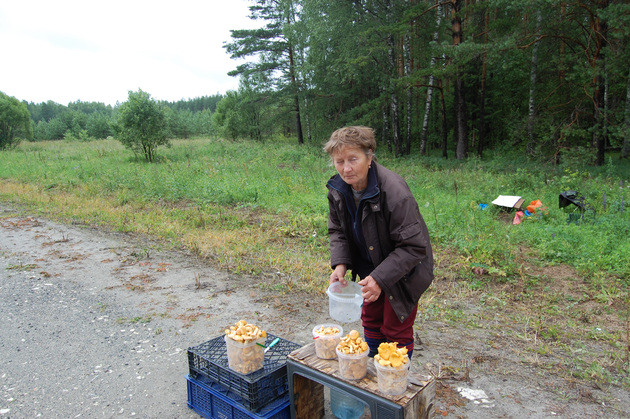 Доходы, по словам пенсионерки, год от года разнятся. В этом неблагоприятном для ягод июне за литр земляники давали 400 рублей, те, кто ездил продавать во Владимир или Москву, и по 500 просили. Лисичек тоже сегодня мало, поэтому цена высокая. Даже перекупщики (а только в Андрееве их несколько) за кило дают 200-250 рублей. Килограмм «демократичных» маслят оценивают скромнее - 70 рублей. Для «безлошадных» сборщиков эти частные и неофициальные заготконторы - благо: добираться до трассы на перекладных не надо, стоять в зной или под дождем в ожидании покупателей тоже.