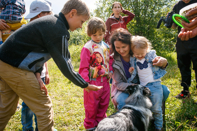 Обещанное шоу дрессированных собачек тоже состоялось и вызвало большой интерес детской аудитории. Малыши, впервые увидевшие фризби, аджилити и кинологический фристайл, долго не отпускали четвероногих артистов. Это была очень милая сцена.