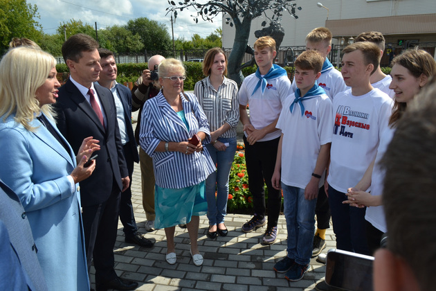 В сквере гостей встретила стайка креативной местной молодежи, участвующей в образовательном проекта «ВязникиВзрослыеДети». Эти активные ребята и продвинули идею «места встреч», которая была за несколько месяцев воплощена в реальность. Девушки и юноши наперебой рассказывали с Ириной Макиевой и Владимиром Сипягиным о своих инициативах сделать вязниковскую жизнь еще более интересной.