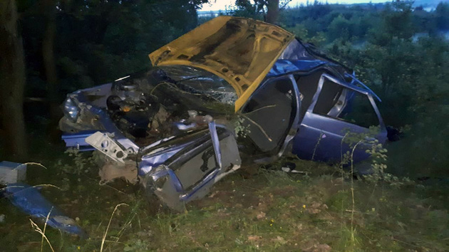 По предварительной информации, водитель ВАЗ-21102 превысил скорость движения, не справился с управлением и на повороте вылетел с дороги. От удара кузов отечественной легковушки размяло, как консервную банку.