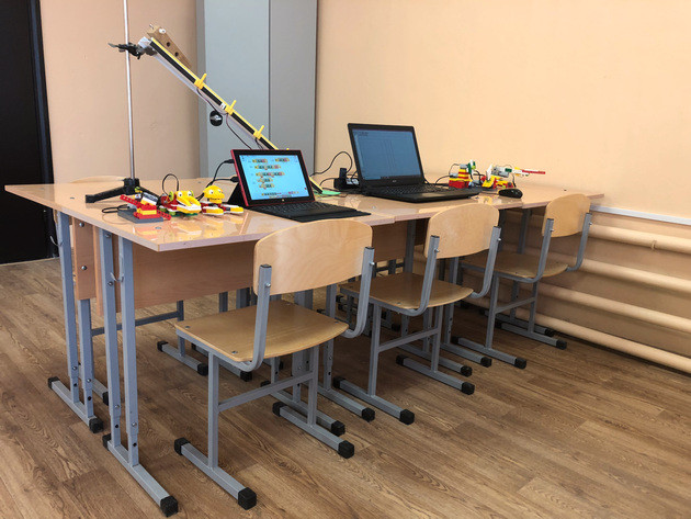 - Самым сложным делом были торги, - признается Сергей Михайлович. – Да и ремонт необычный, нестандартный. К примеру, в классе надо вместо одной розетки сделать 16. И не на стенах! Освещение современное подбирали, на светодиодах. Мебель тоже необычная – вместо парт красные столы, желтые стулья и разноцветные диванчики. На подвесном потолке – изображения молекул, атомов и микроскопа.