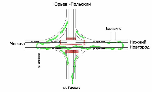 На время ремонта ночью сквозное пересечение трассы М7 со второстепенных дорог и левые повороты будут закрыты. Для выезда из города в направлении Юрьева-Польского и для въезда во Владимир по Юрьев-Польской дороге нужно будет развернуться на светофорах микрорайона Веризино и на пересечении с улицой Белоконской соответственно.