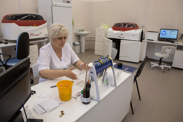 В новом корпусе идет прием в кабинетах акушера-гинеколога, уролога, онколога, маммографии, в двух кабинетах УЗИ. В блоке эндоскопических методов исследований появилась новая эндоскопическая стойка с возможностью проведения гастроскопии и колоноскопии. Среди других новинок - цифровой маммограф и кольпоскоп. Автоматические анализаторы преобразили работу биохимической лаборатории.