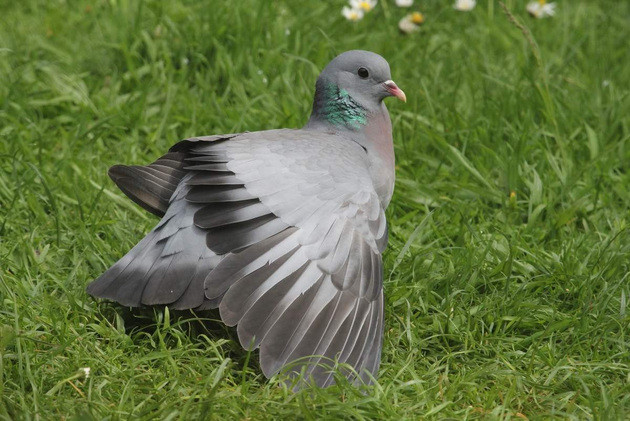В наши края эта птица прилетает в конце марта - начале апреля. Знатоки клинтуха с голубем не спутают, а вот дилетанты запросто: похожи, разве что клинтух немного меньше по размеру. Окрас у клинтуха тоже сизый, белого цвета в оперении нет, зато на шее перья с зелёным и красноватым отливом. На крыльях - ряды тёмных пестрин, но они не сливаются в сплошные полосы. Самец и самка почти неразличимы. Молодые особи - более бледные, с буроватым оттенком.