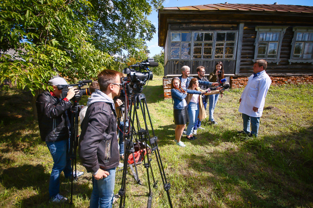 В селе Григорово спикер побывал в гостях у одного из самых известных фельдшеров региона — Алексея Быкова, того самого, кто объезжает своих возрастных пациентов в семи населённых пунктах на велосипеде, а если не сезон — то на личном авто, потому что «старикам тяжело добираться» до ФАПа. «ВВ» рассказывали историю Быкова — скромного 24-летнего парня, на чьем попечении несколько сот подопечных, преимущественно пожилых людей. Тем больше было наше удивление, когда мы увидели «тот самый» ФАП — половина старого (по словам местных, 70-летнего) дома, местами буквально дырявого насквозь, где нет водопровода, а отопление — банальная печка. Фельдшер с помощницей — санитаркой Галиной Масленниковой сам её топит, а руки моет в дедовском рукомойнике. Кстати, когда мы с ним общались полтора месяца назад, Алексей ни словом не обмолвился о своих интересных условиях труда. Не жаловался он и спикеру — встретил всех с улыбкой, говорил, как любит свою работу.